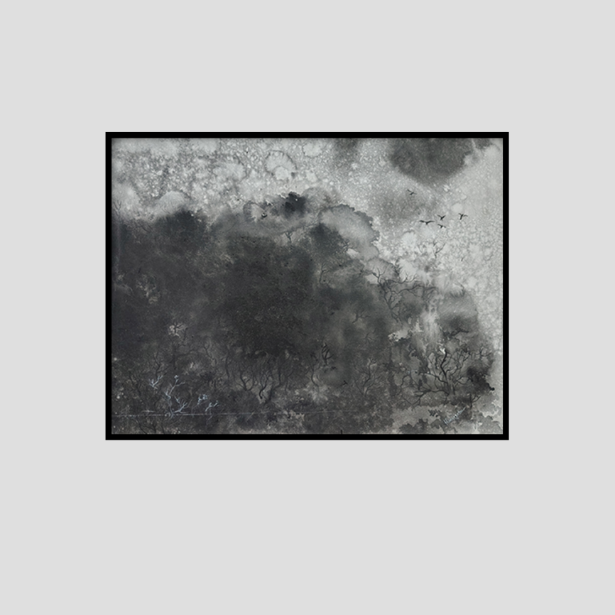 Abstract Black & Grey Textured Landscape – Modern Canvas Painting