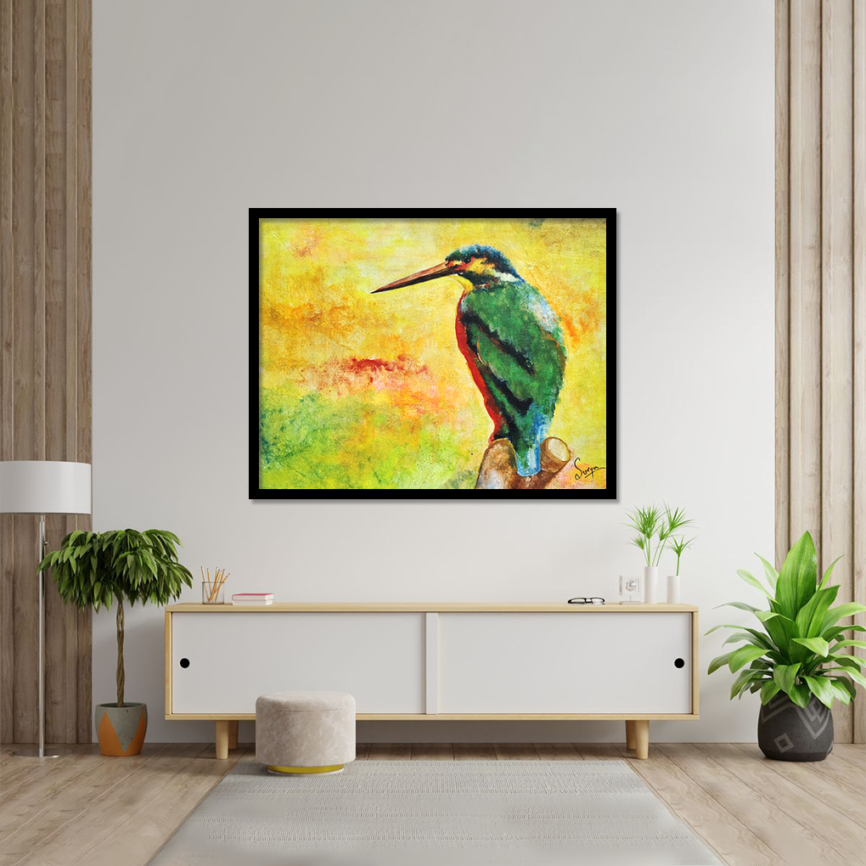 Kingfisher Bird Art – Hand-Painted Nature Canvas Wall Painting