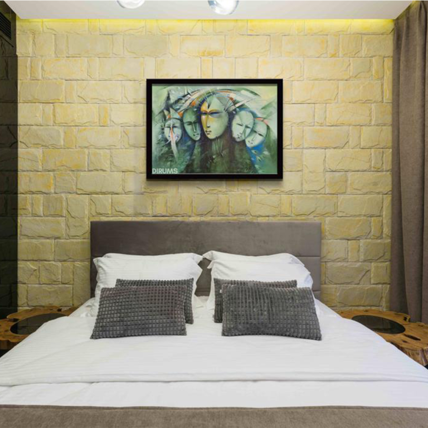 Ans. Our abstract wall paintings are typically made on canvas or handmade paper using acrylic, oil, or mixed media paints, depending on the artist’s style.