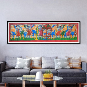 5. Large Pattachitra Tribal Celebration Painting (48 x 14.5 Inches)