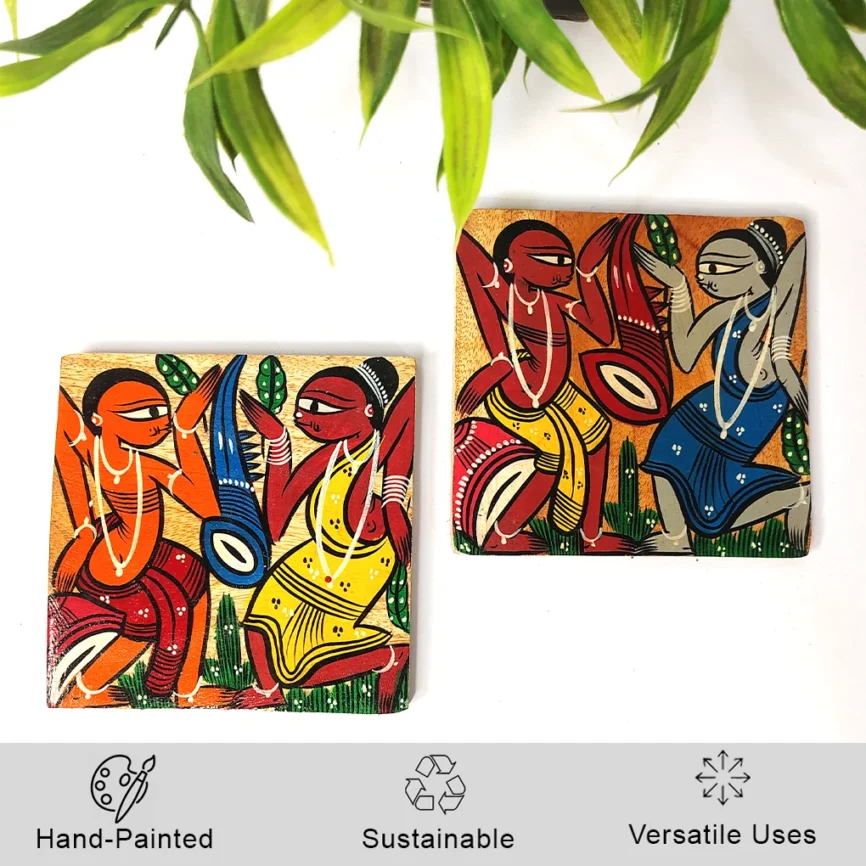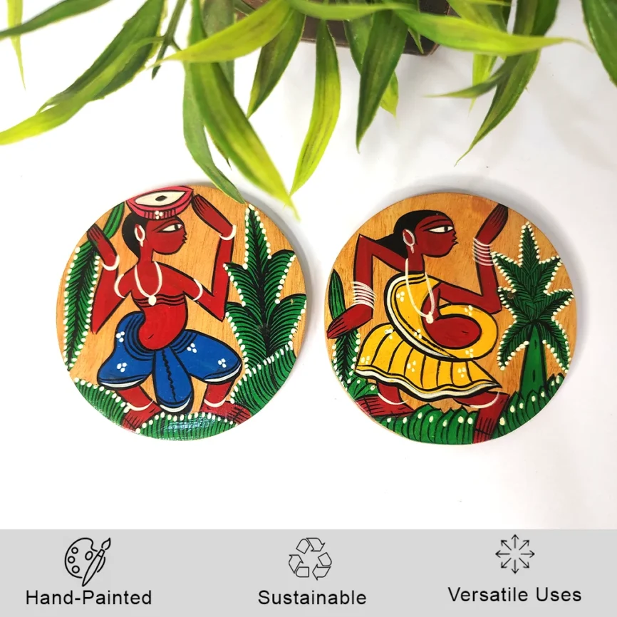 Hand-Painted Pattachitra Wooden Coasters (Set of 2)