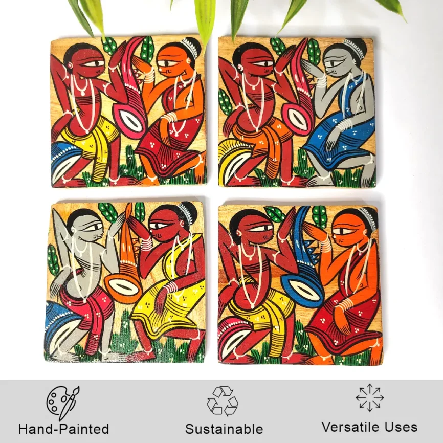 Hand-Painted Pattchitra Wooden Coasters (Set of 4)