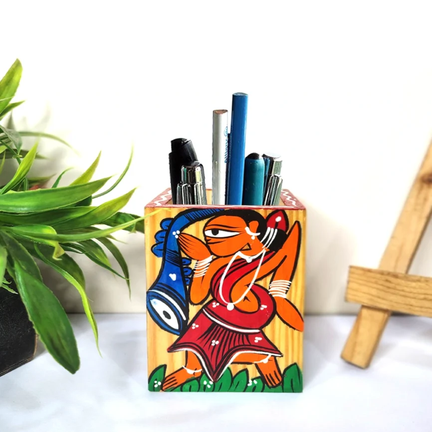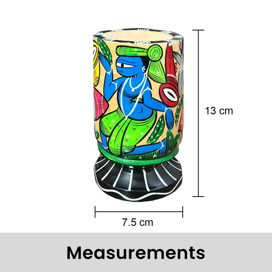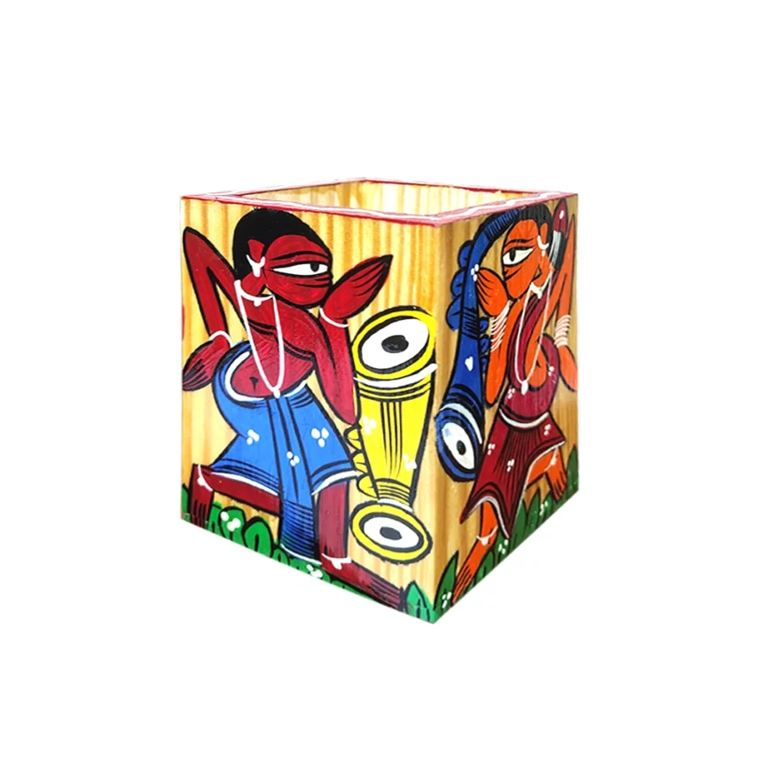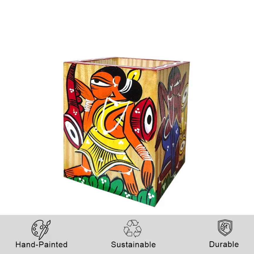 Hand-Painted Pattachitra Wooden Pen Stand/Cutlery Holder