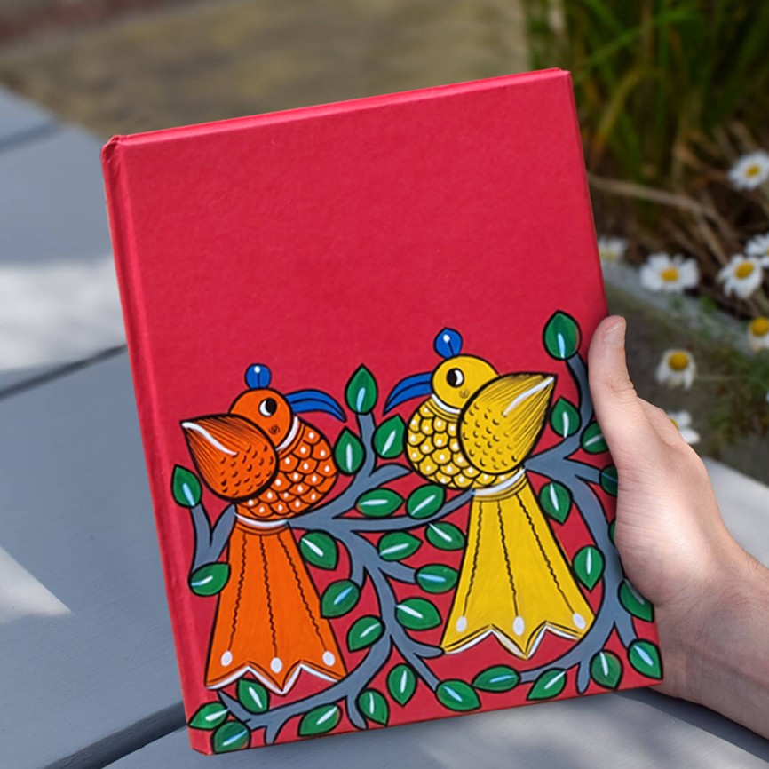Hand-Painted Pattachitra Bird Art Diary with Handmade Paper | Artisan Folk Painting Journal