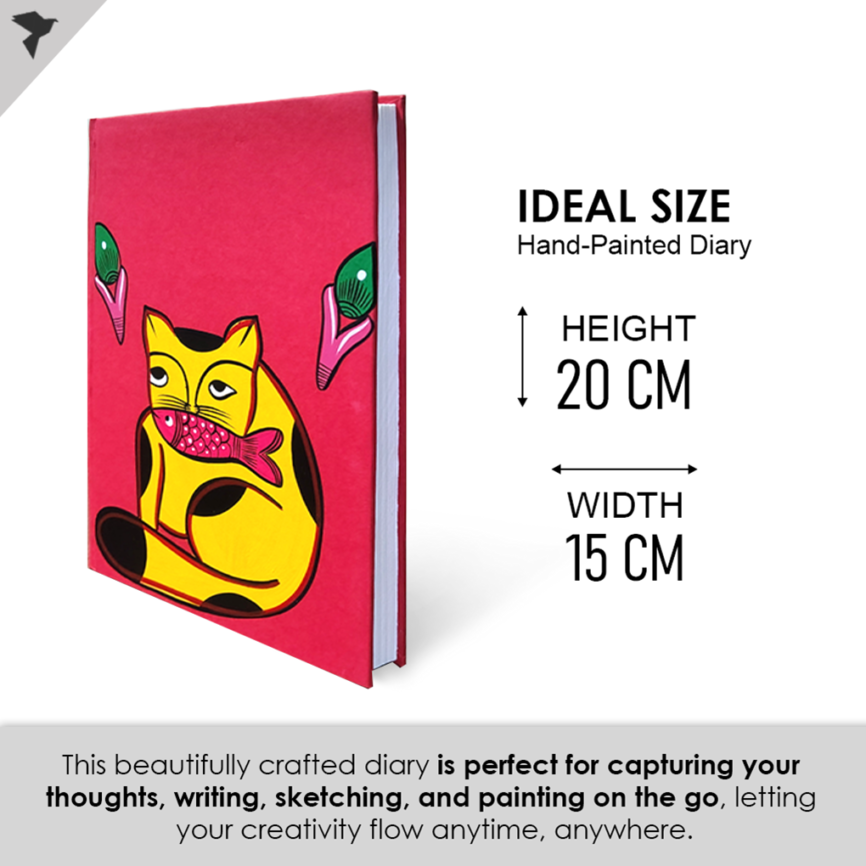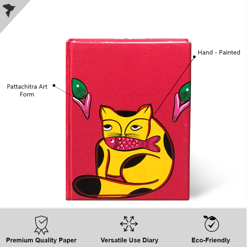 Hand-Painted Pattachitra Cat Art Diary with Handmade Paper | Artisan Folk Painting Journal