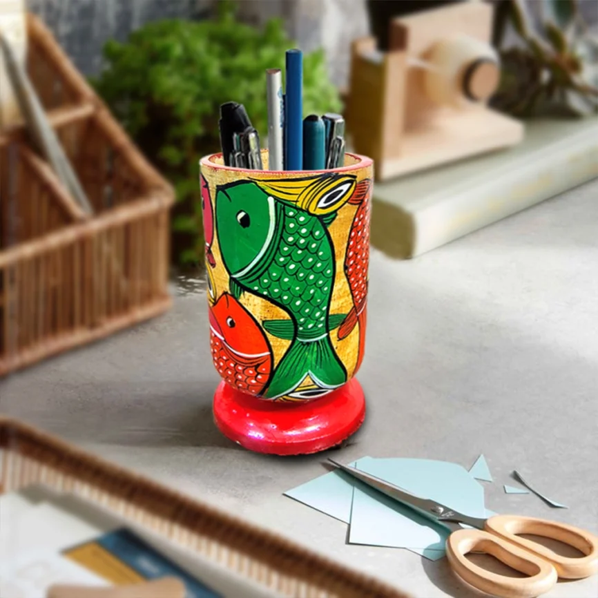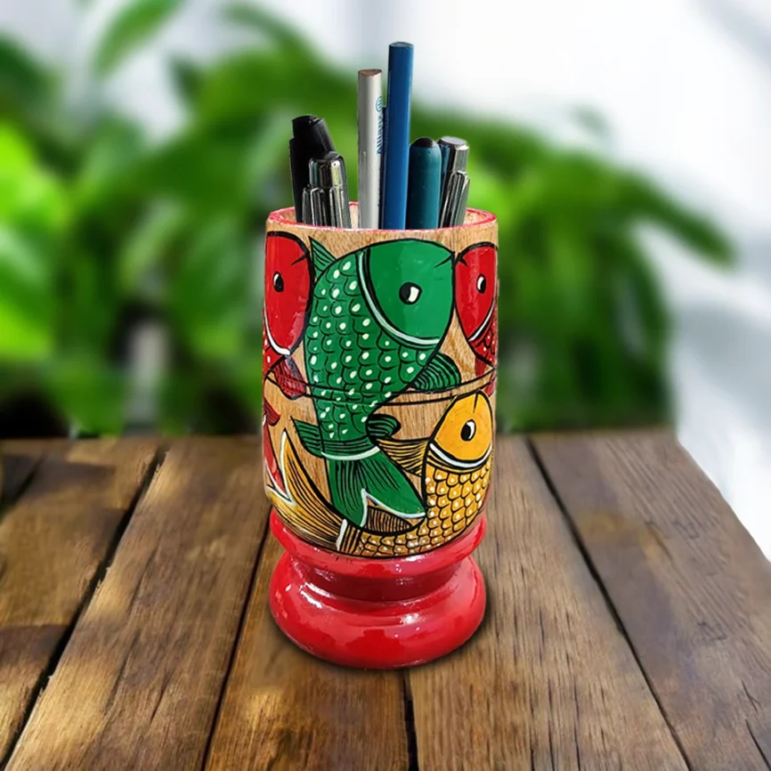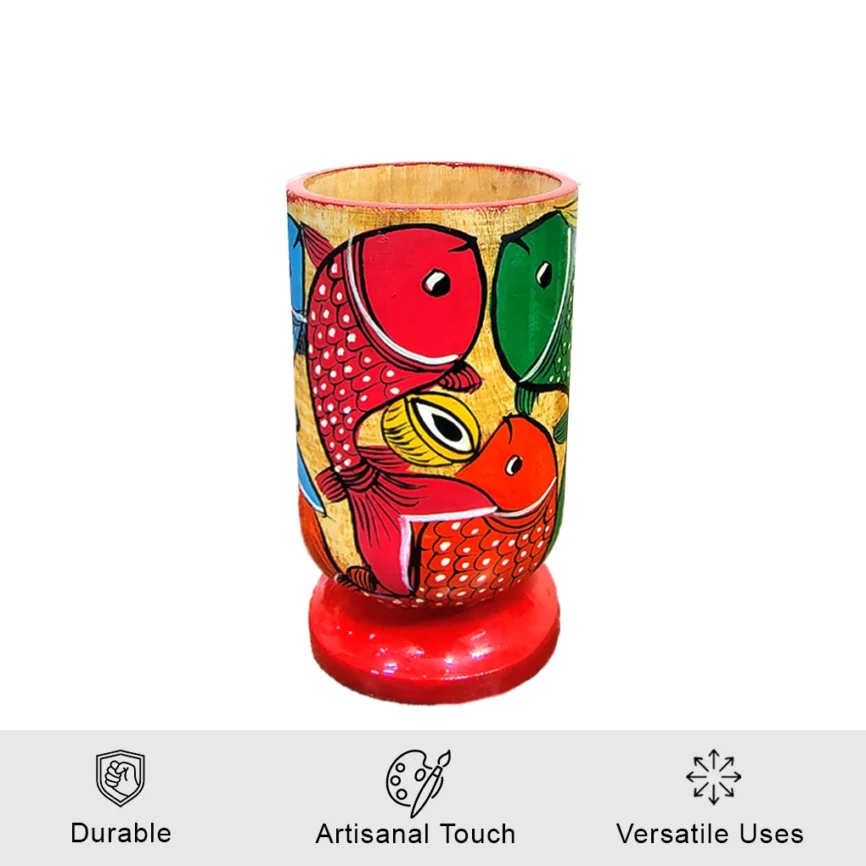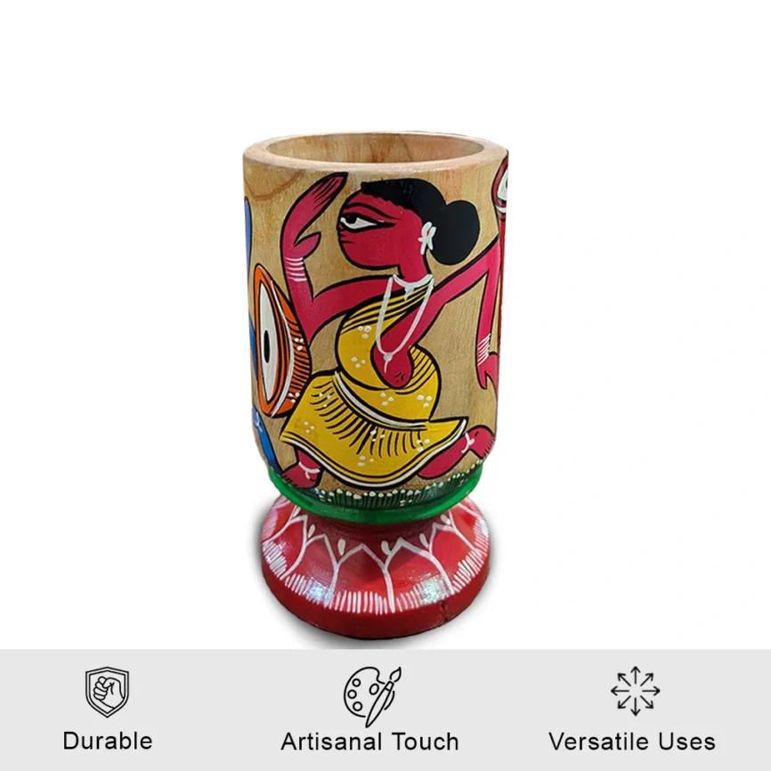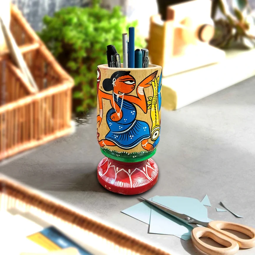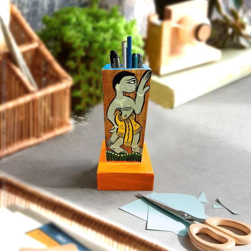 Hand-Painted Pattachitra Wooden Pen Stand/Cutlery Holder