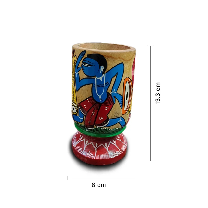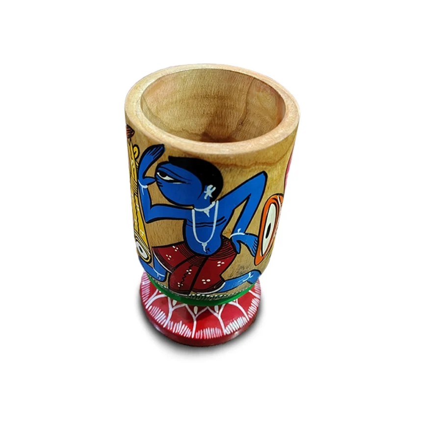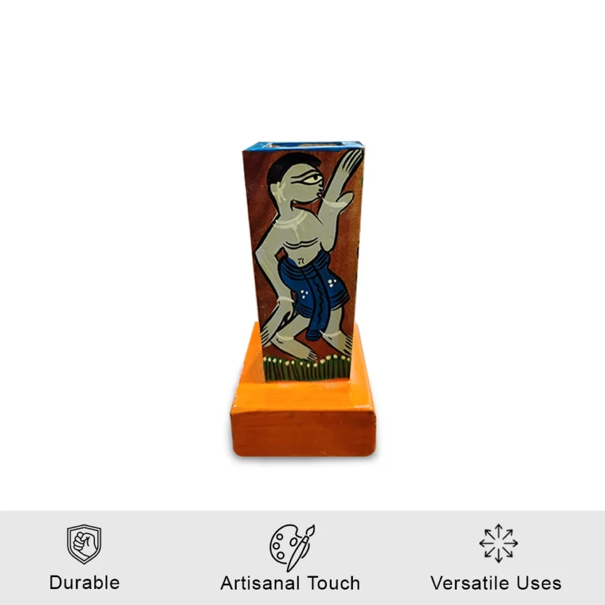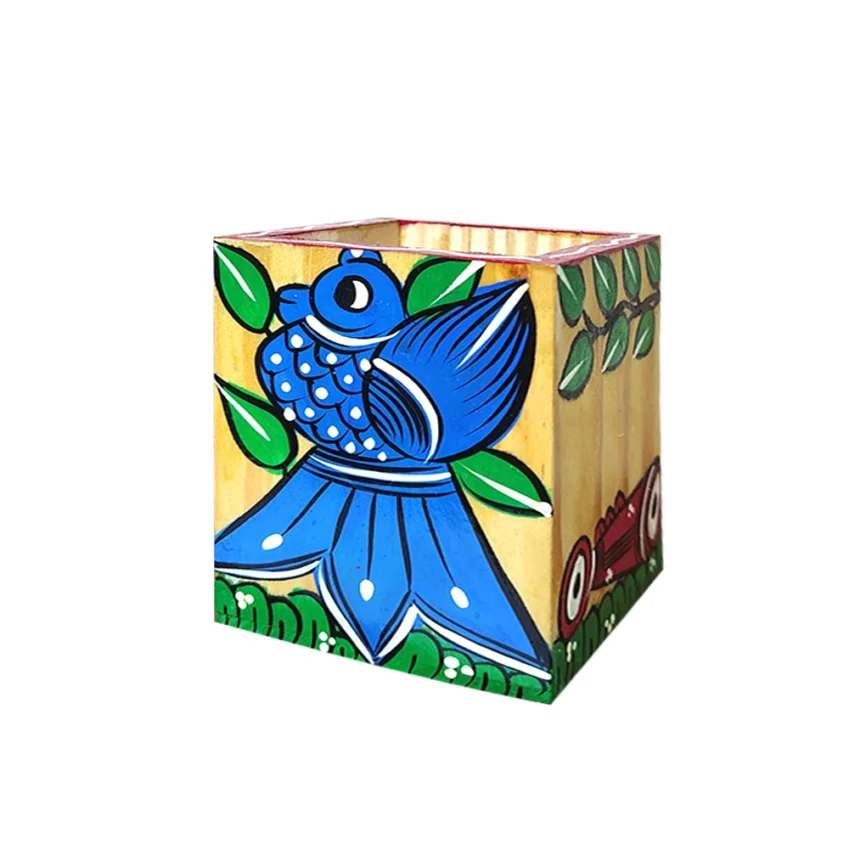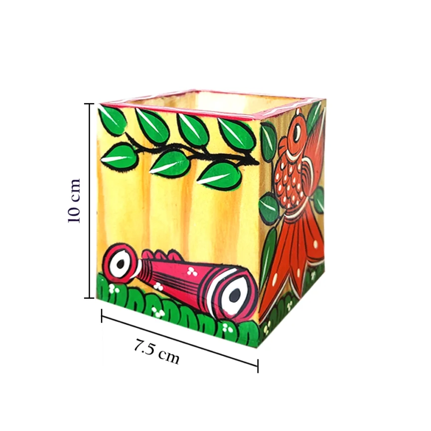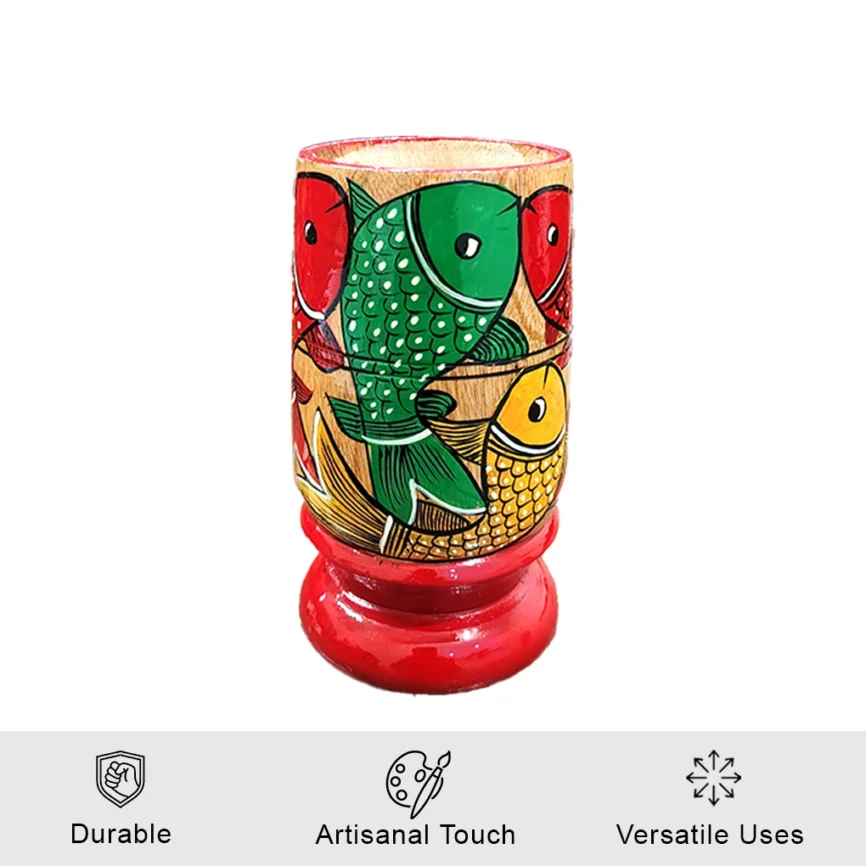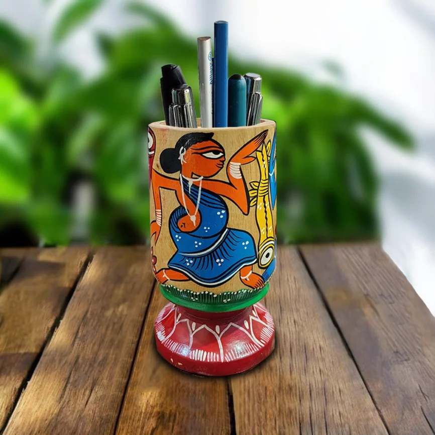Hand-Painted Pattachitra Wooden Pen Stand/Cutlery Holder