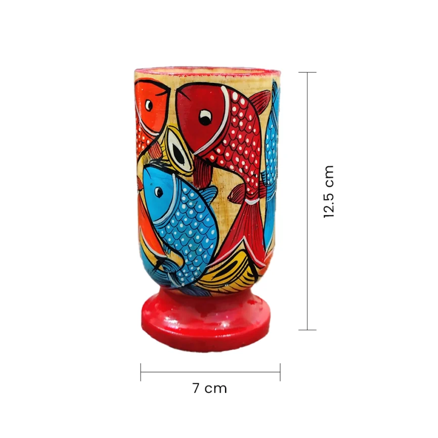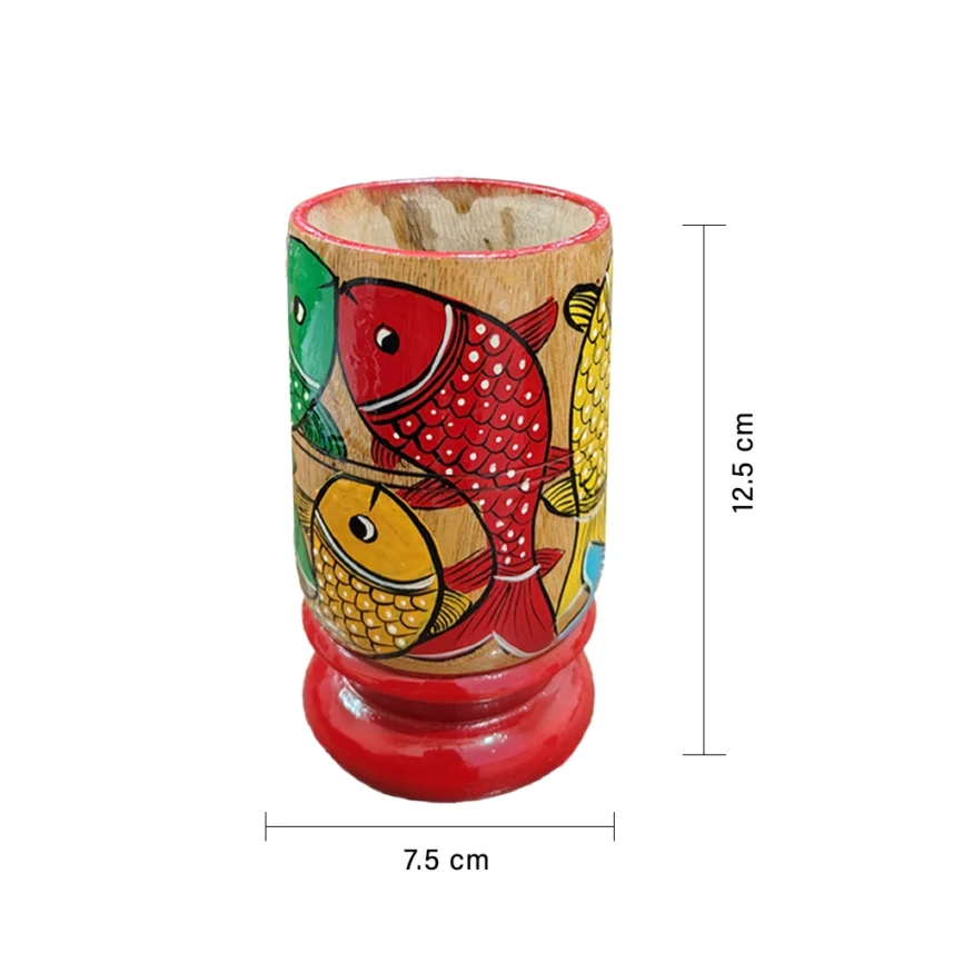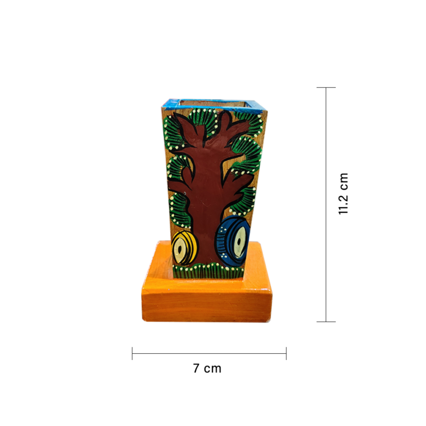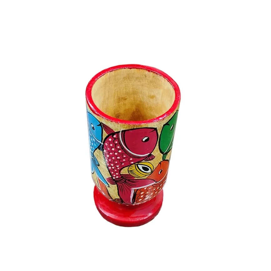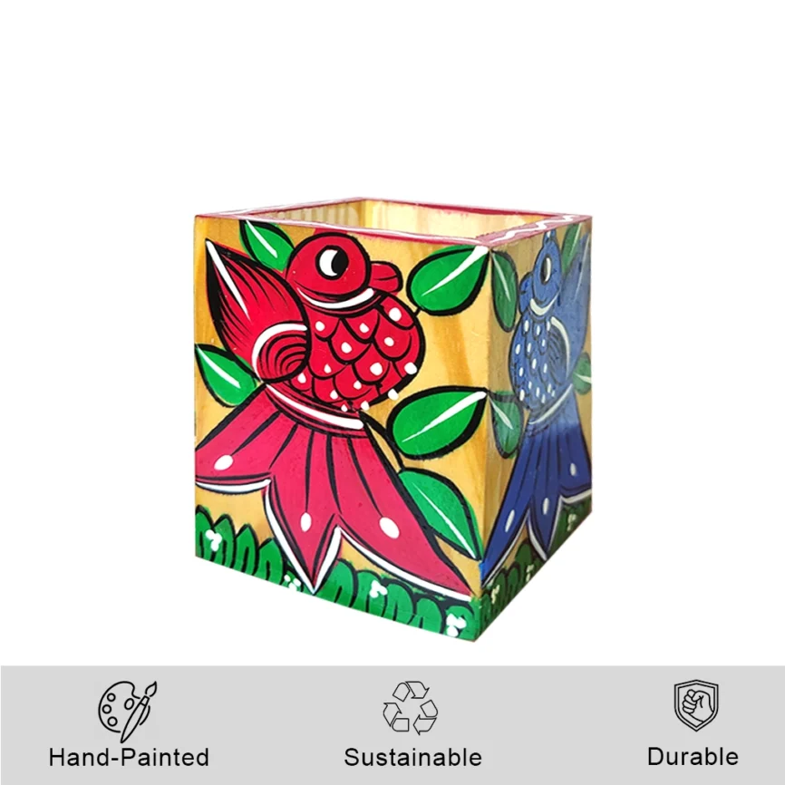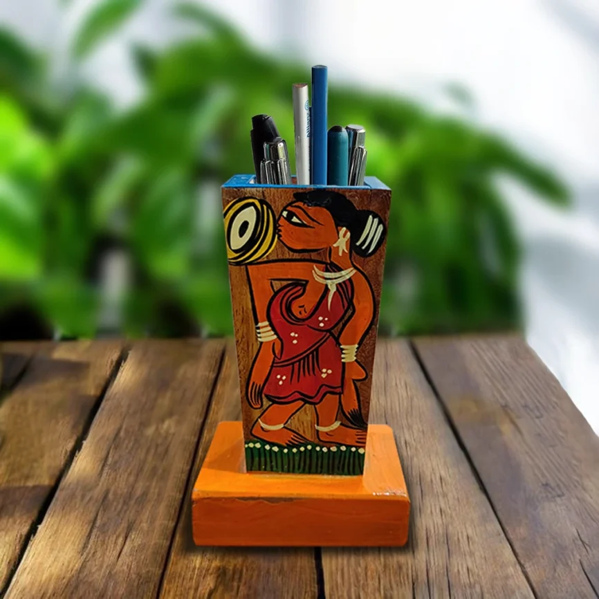 Hand-Painted Pattachitra Wooden Pen Stand/Cutlery Holder