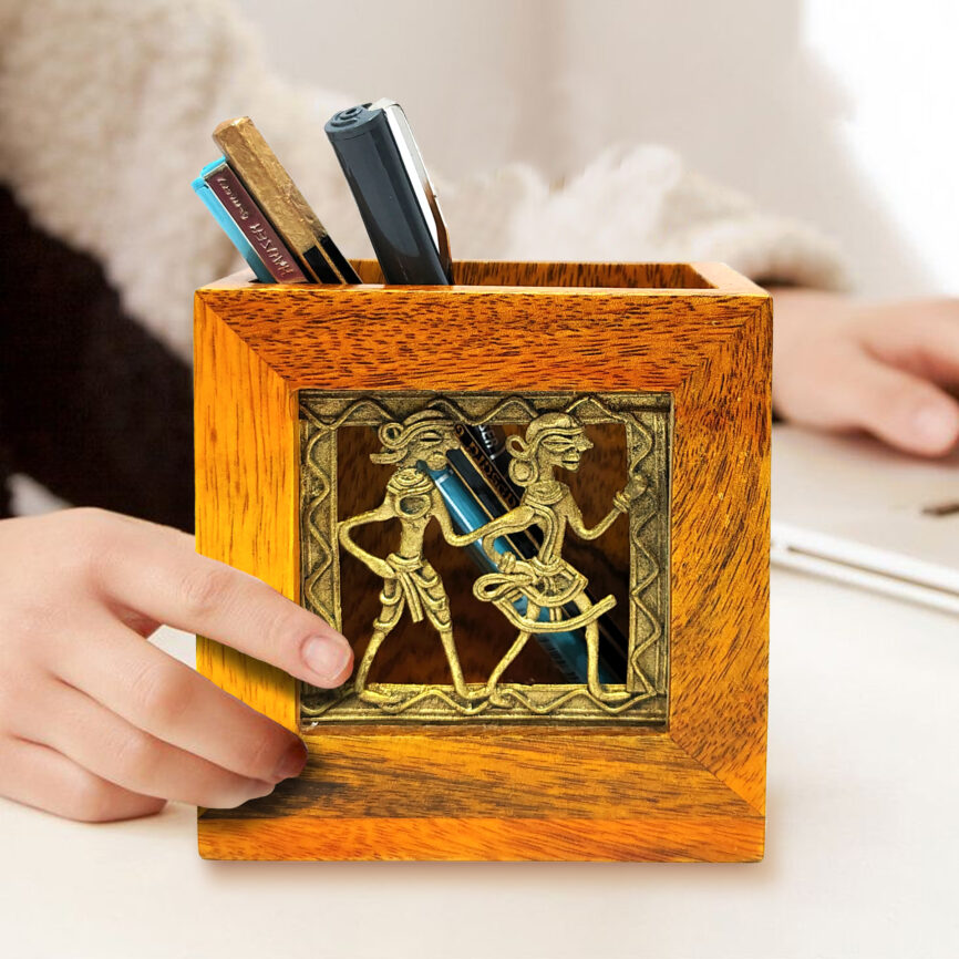 Dhokra Pen Stand | Artistic Design | Home & Office Decor