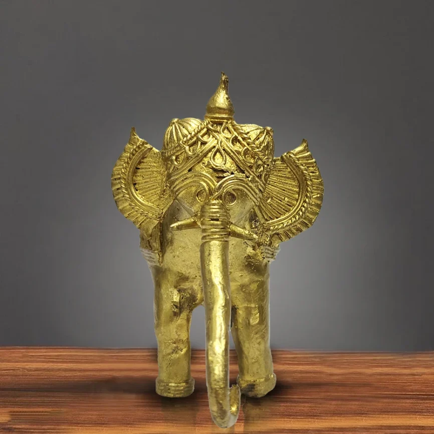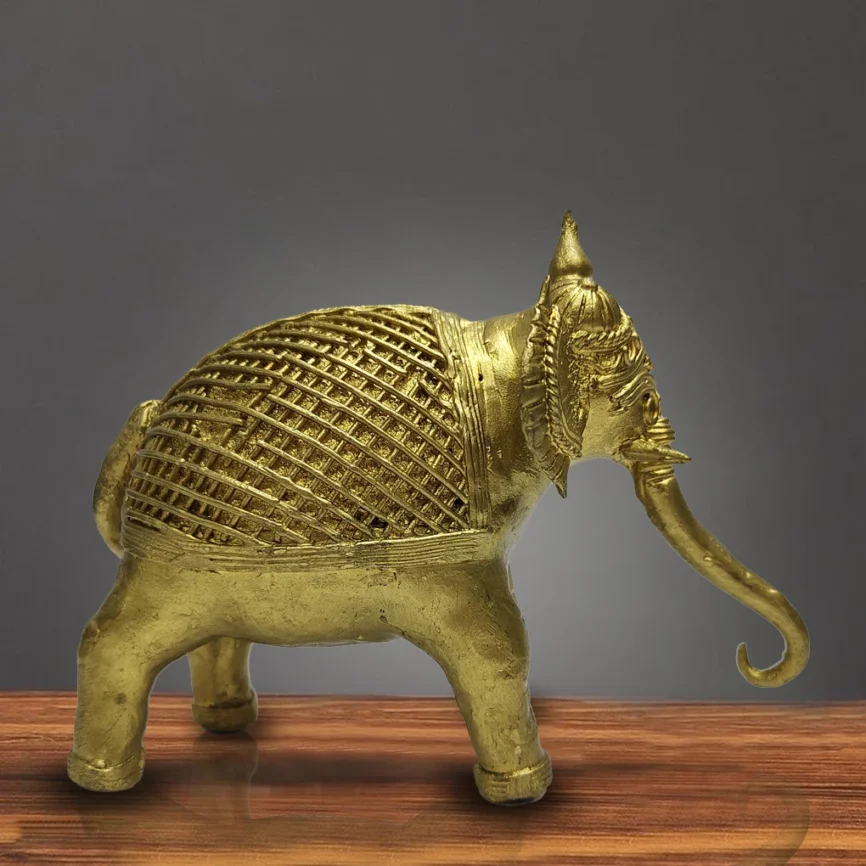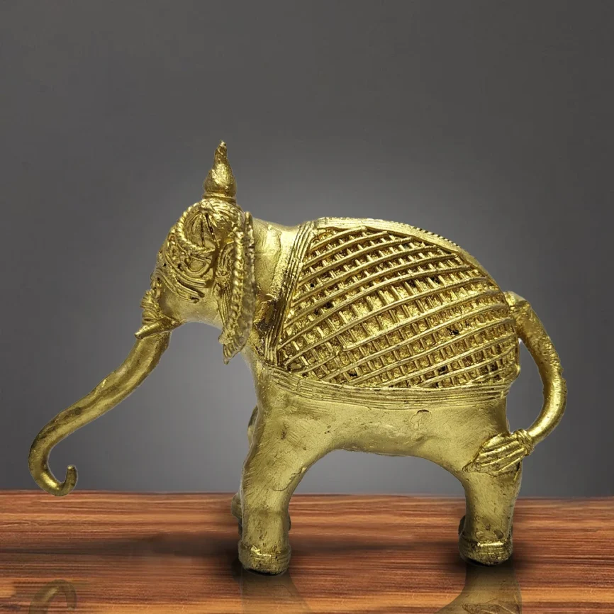 Dhokra Art Brass Elephant | Handcrafted Decor & Vastu Showpiece