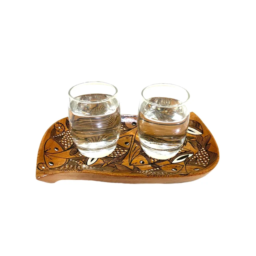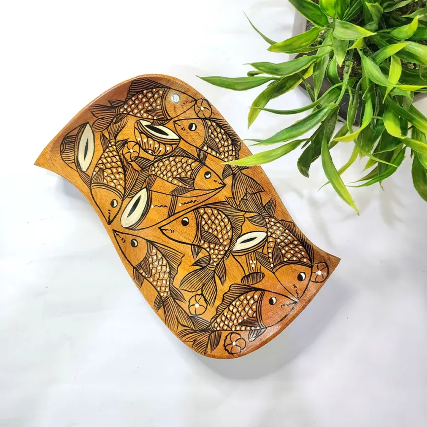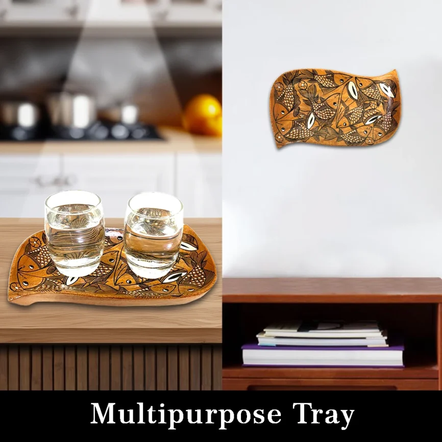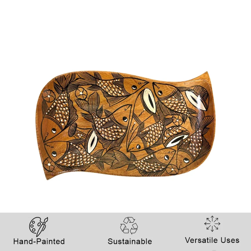 Hand-Painted Tribal Fish Design Small Wooden Serving Tray