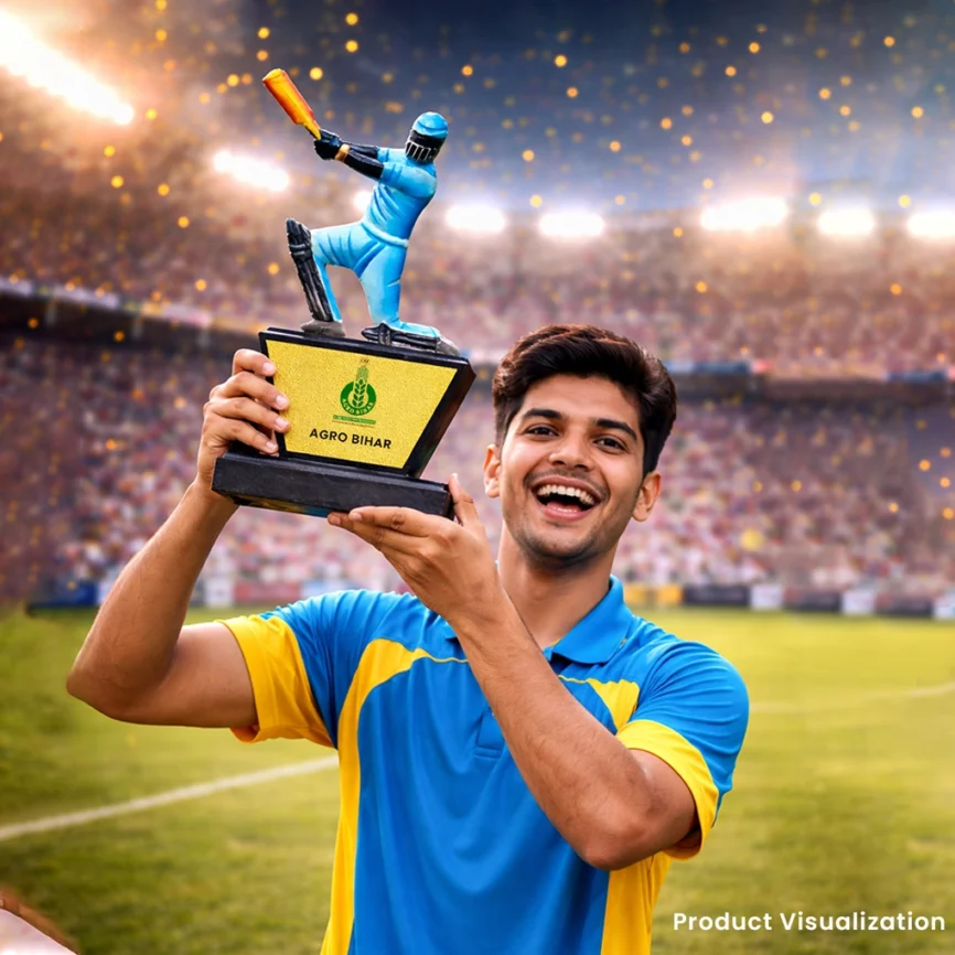 Handcrafted Cricket Player Trophy Figurine – Decorative Sports Showpiece for Table, Office & Gifts | Resin Cricket Statue with Base
