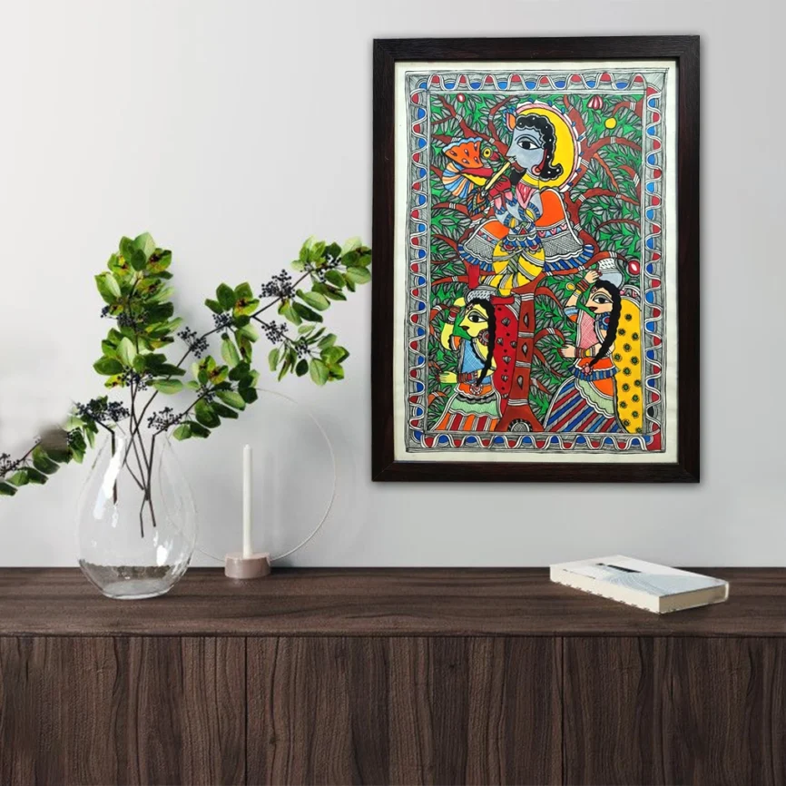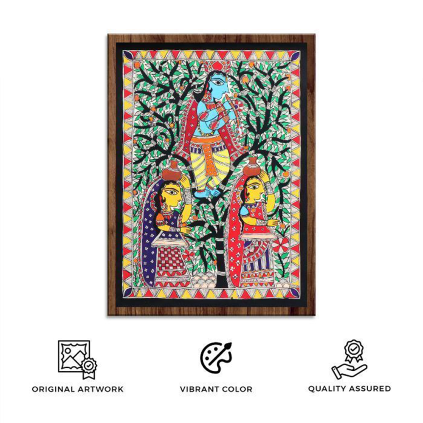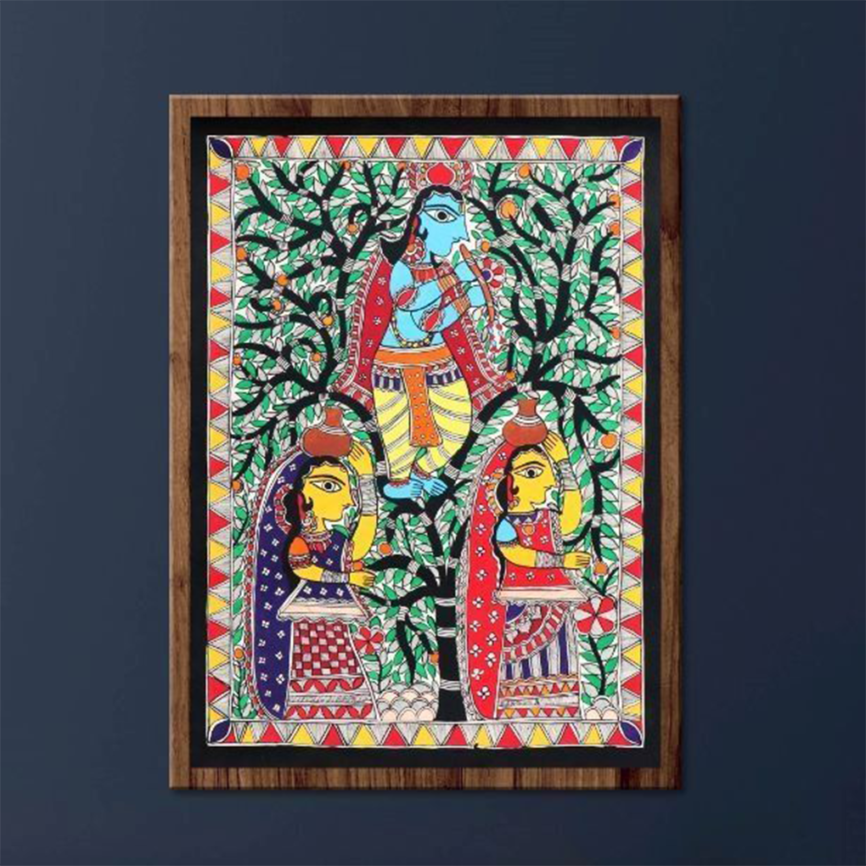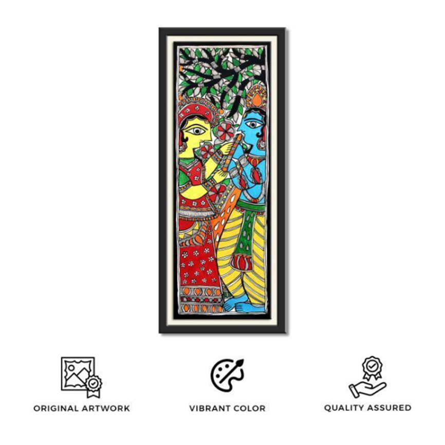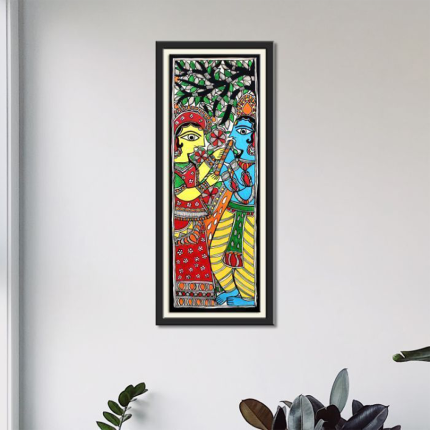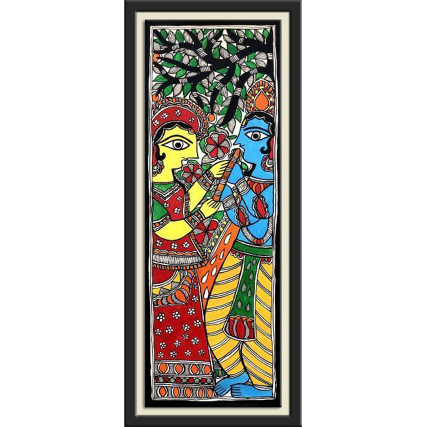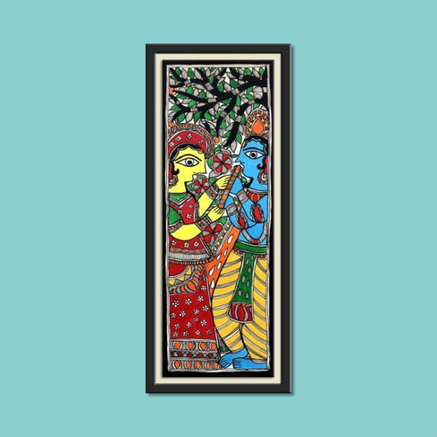 Madhubani Radha Krishna Painting Under the Tree