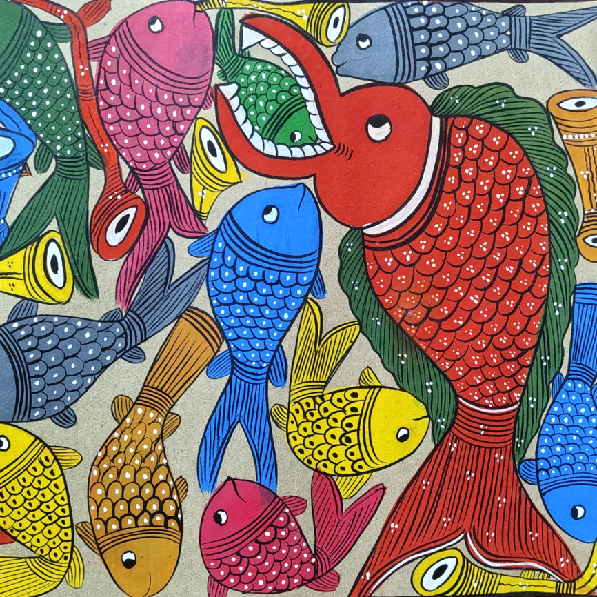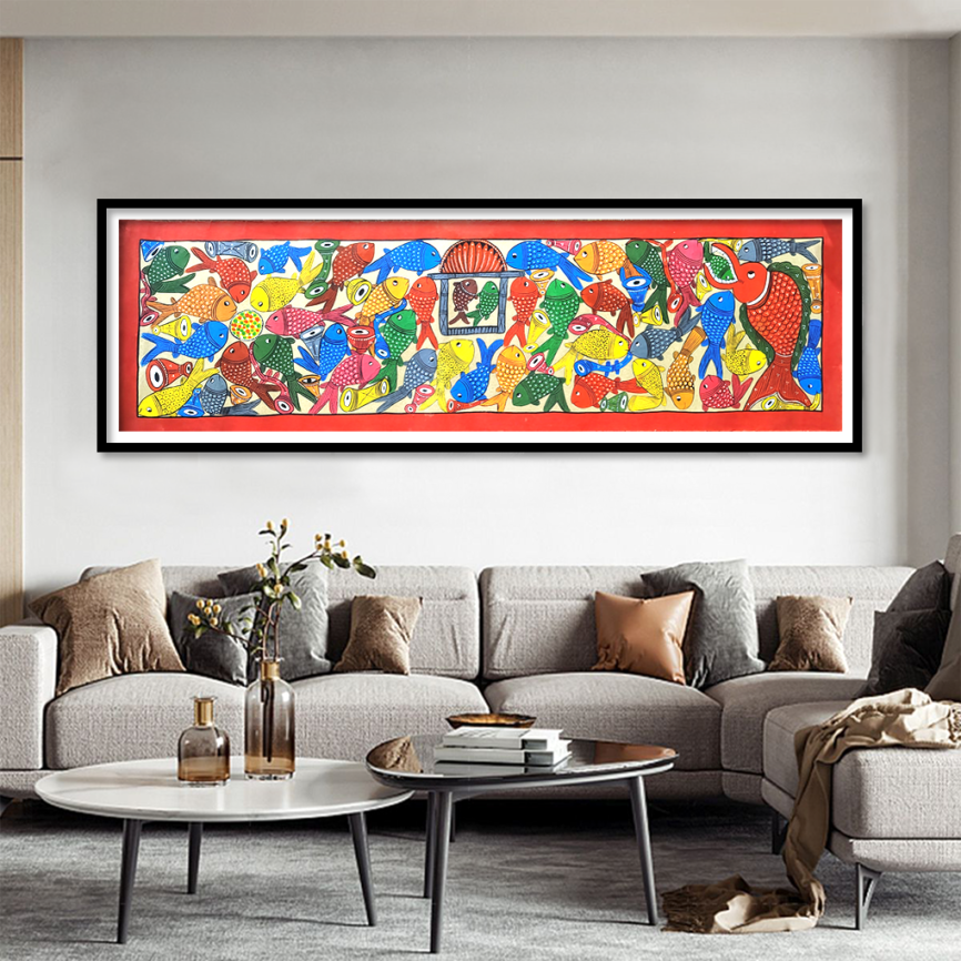 Madhubani Fish Theme Painting | Handcrafted Mithila Folk Art