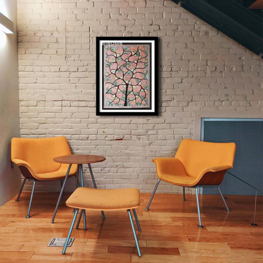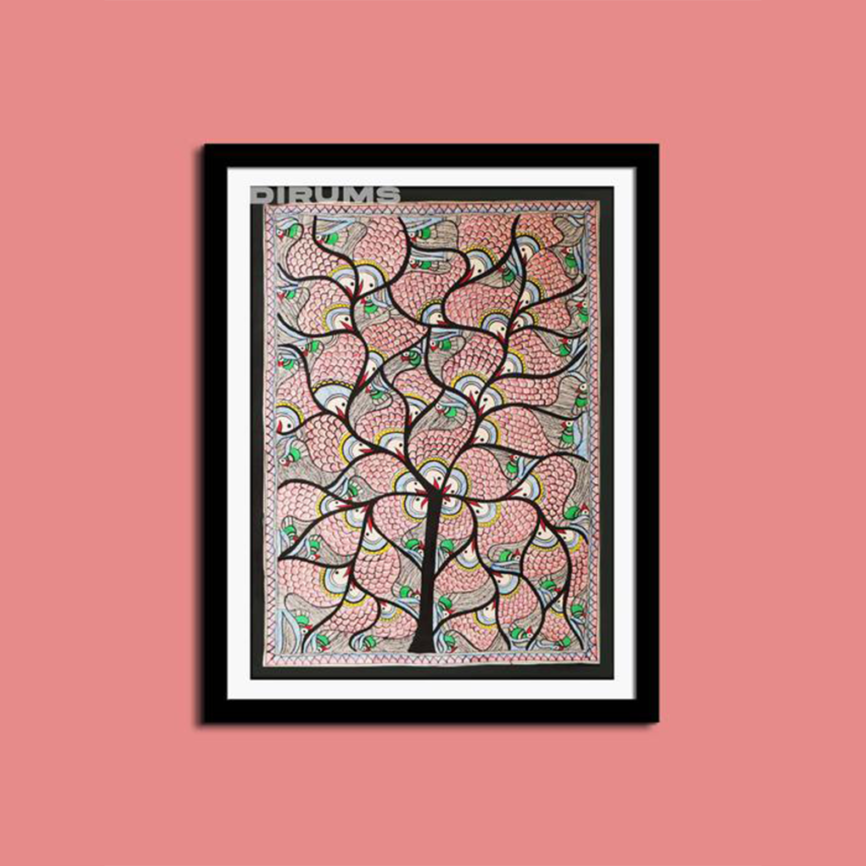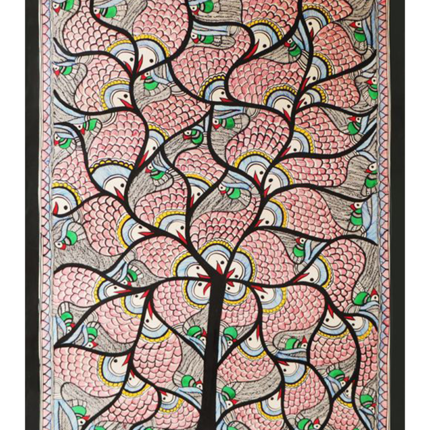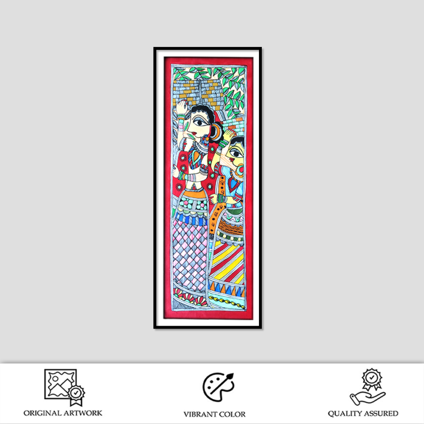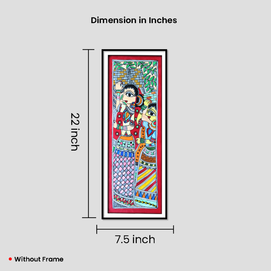 Madhubani Village Women Painting – Hand-Painted Mithila Art (Vertical Wall Décor)