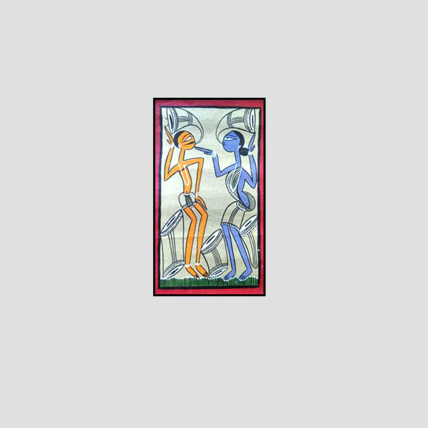 Miniature Tribal Couple Pattachitra Painting | 12 x 7 Inches Handpainted Folk Art
