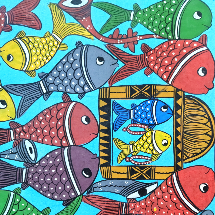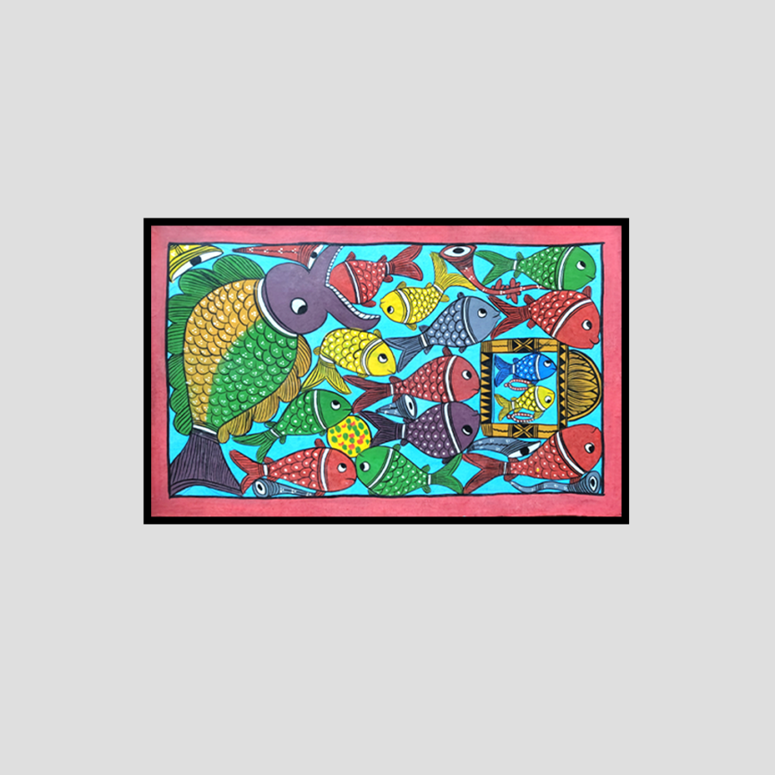 Multicolour Fish Theme Pattachitra Painting | 22 x 14 Inches Handcrafted Folk Art