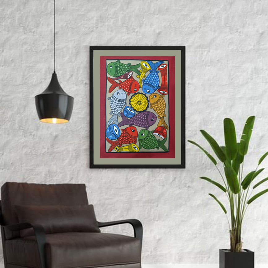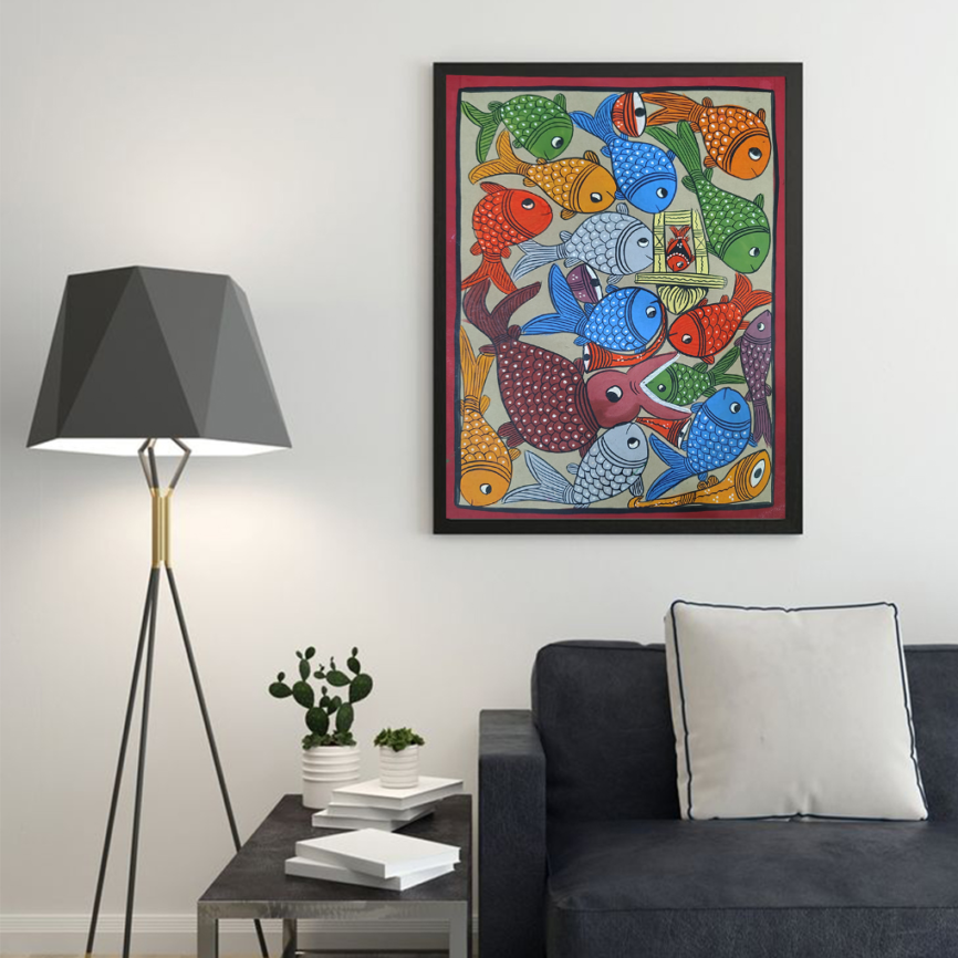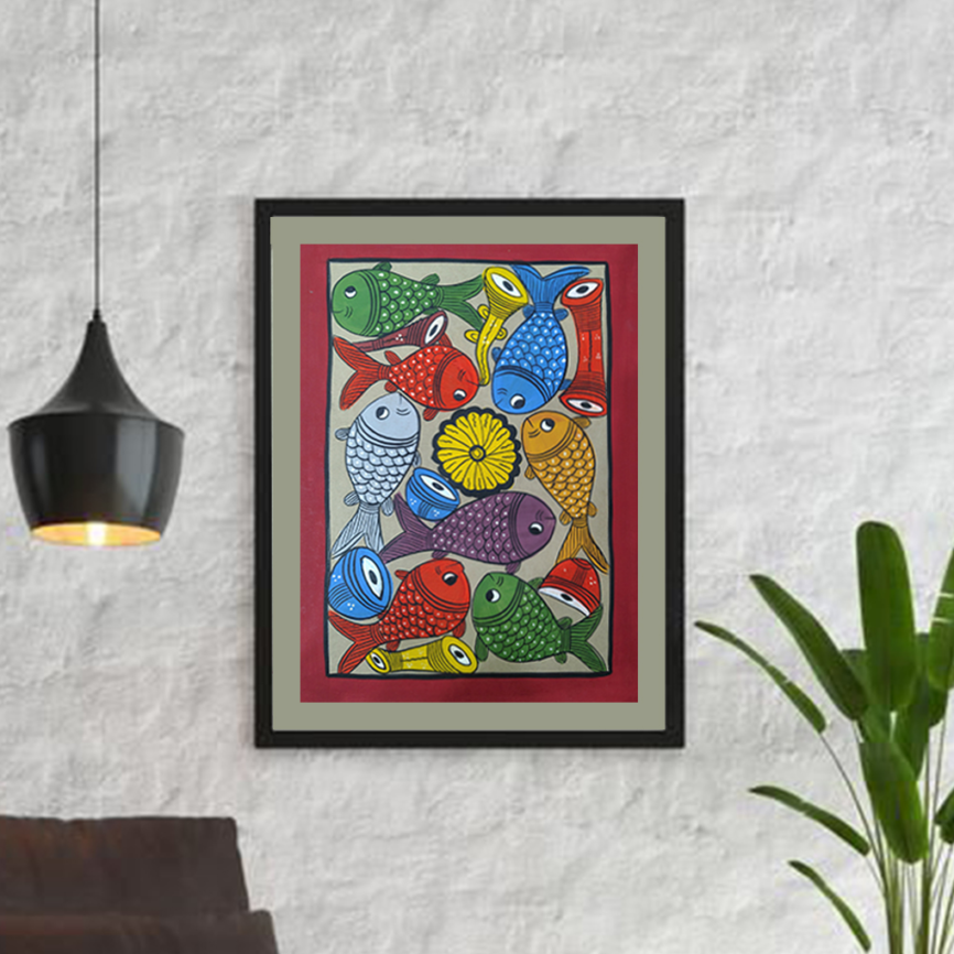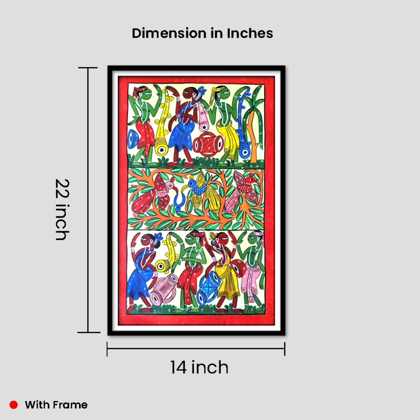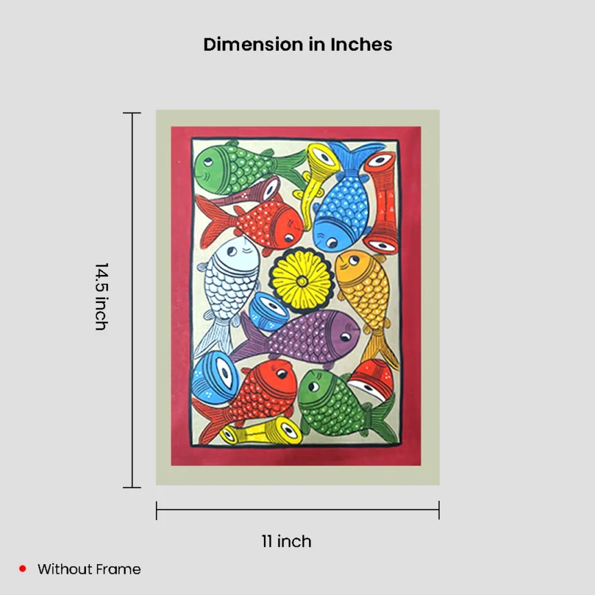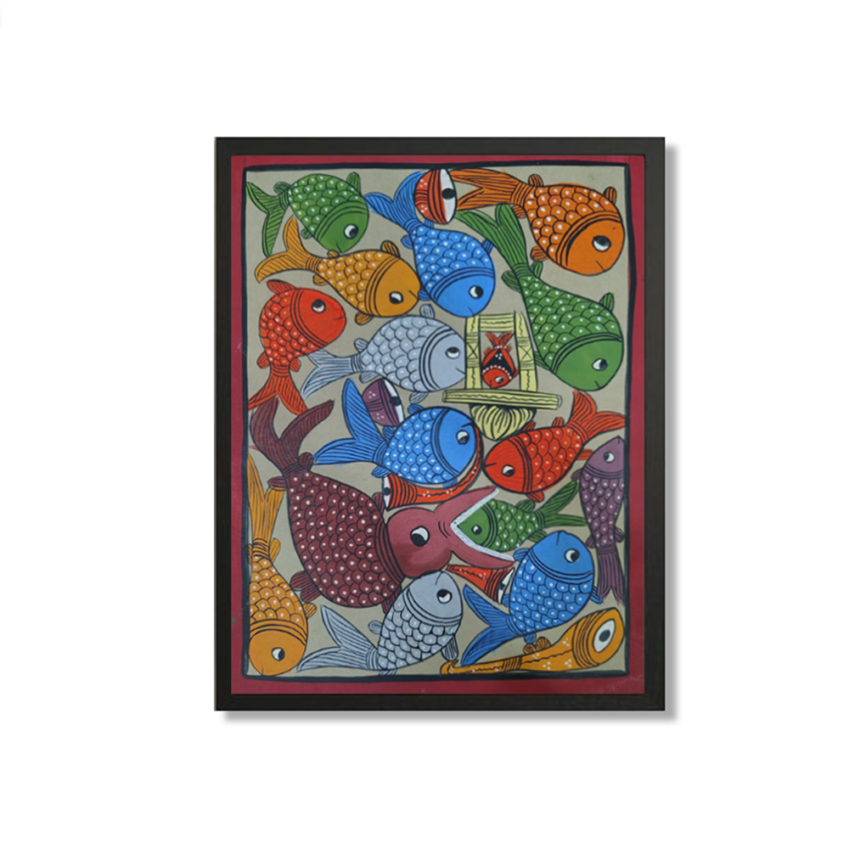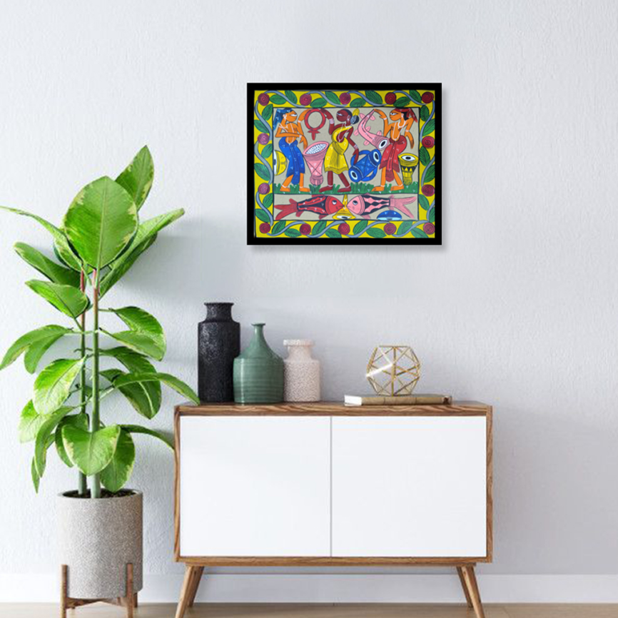 Pattachitra Tribal Dance with Fish Motif Painting | Folk Art Wall Decor
