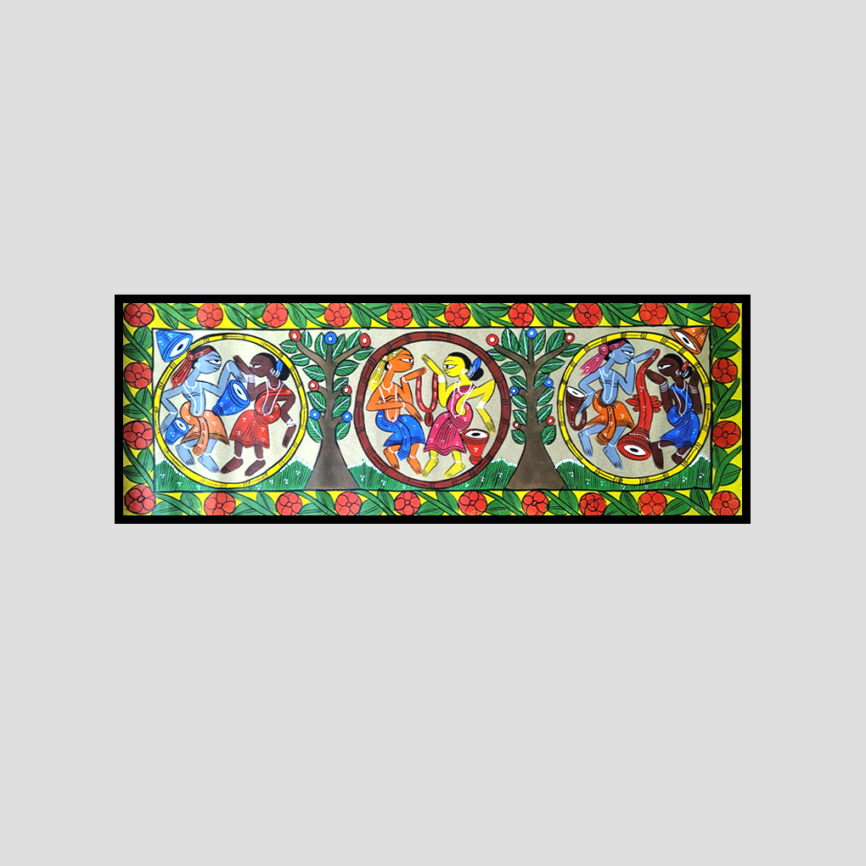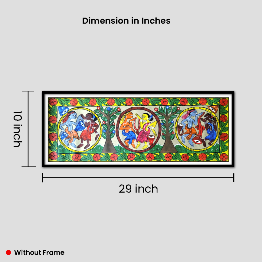 Pattachitra Tribal Dance Wall Art | 29 x 10 Inches Handcrafted Folk Painting