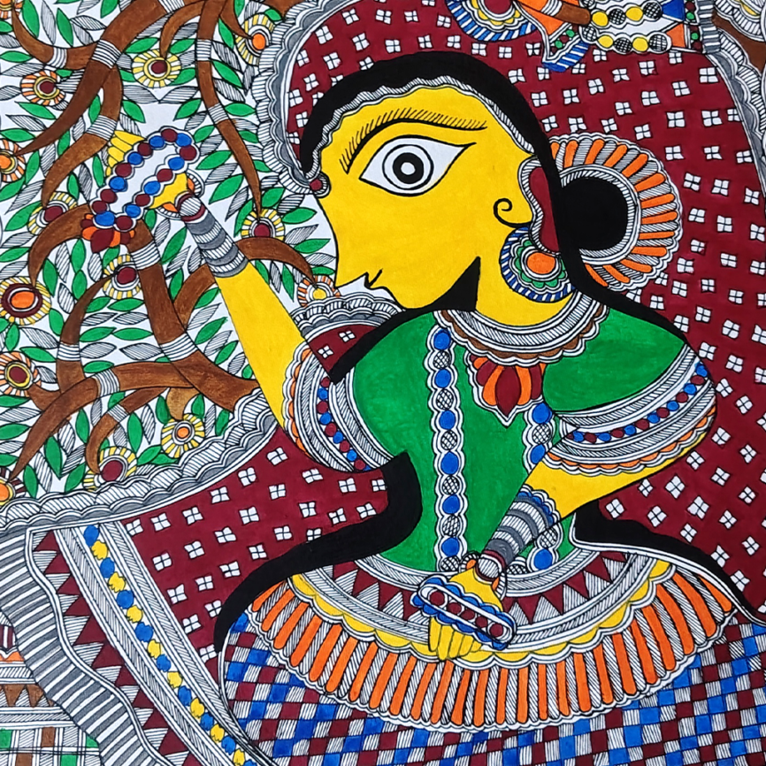 Graceful Radha Under the Kadamba Tree – Traditional Madhubani Folk Art Painting