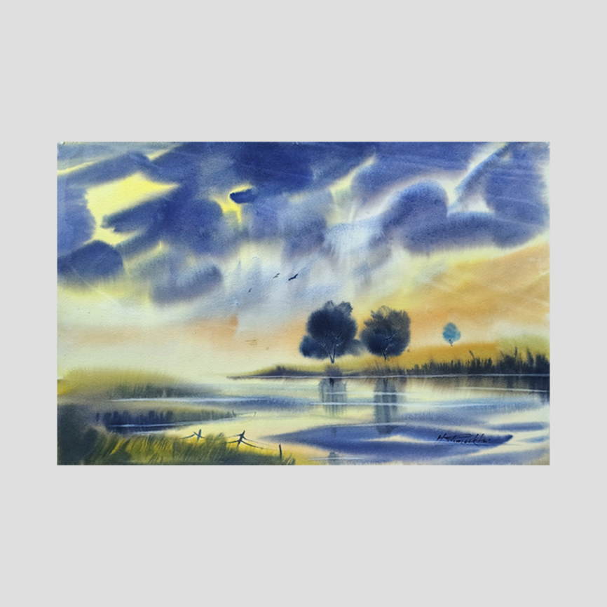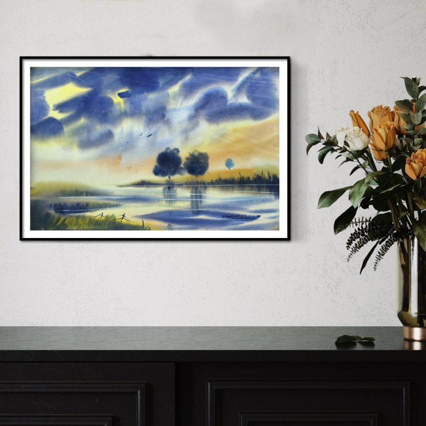 Golden Horizon Reflections – Original Watercolour Landscape Painting