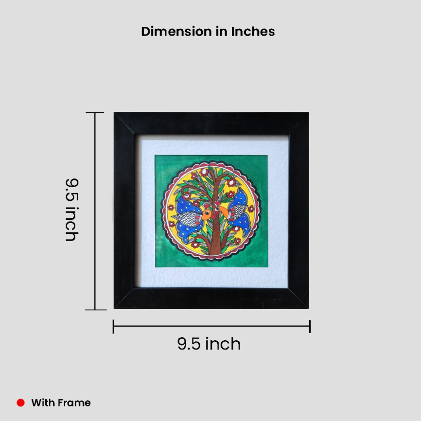 Framed Madhubani Tree of Life with Birds – Traditional Hand-Painted Folk Art